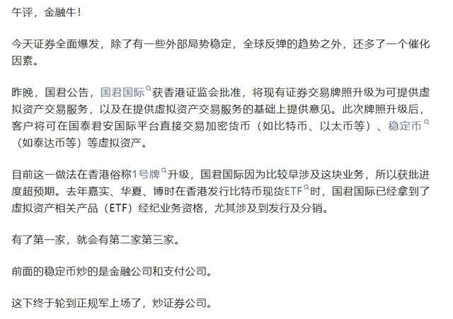 如果只有香港的公司忙活稳定币,那还和A股散户离的太远了。
